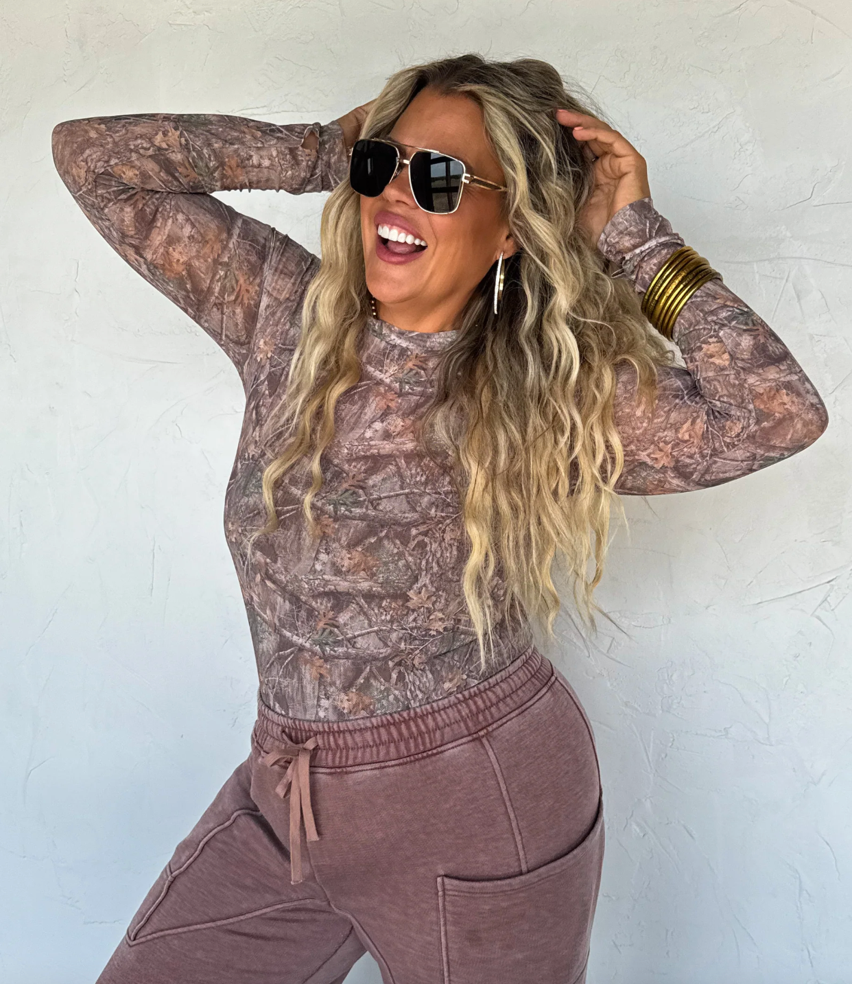 Stretchy mesh print long-sleeve top features a totally sheer design. Perfect for layering or worn alone. Pairs great under graphic tees or Cardigans too! Crew neck and thumbhole details sleeves.