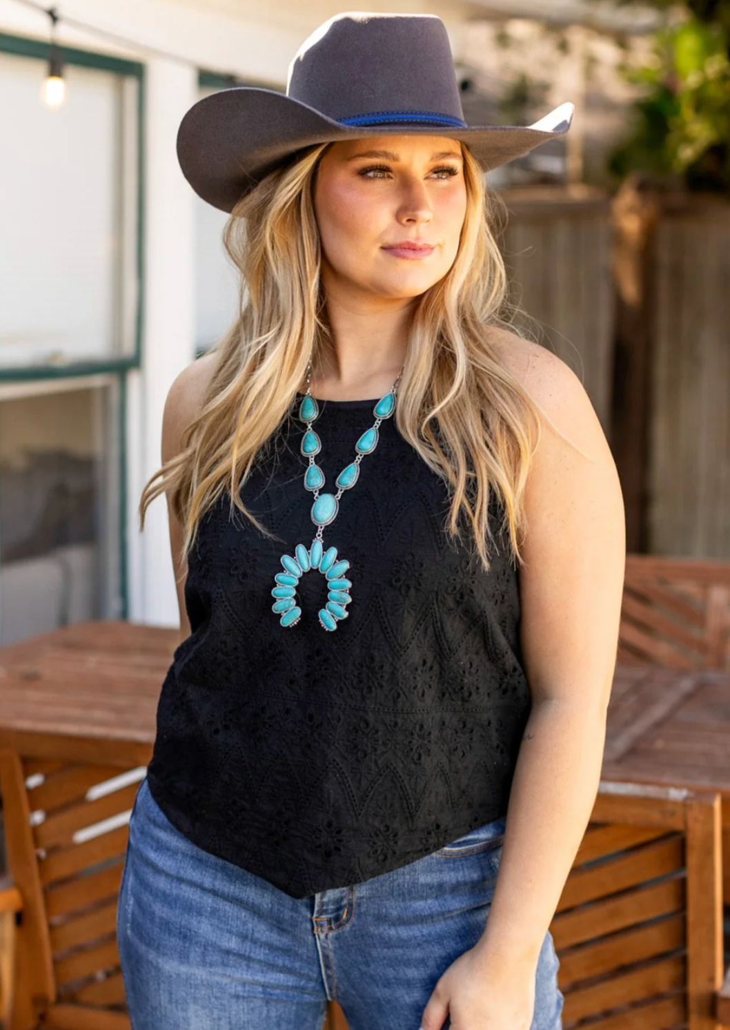 Eyelet Tank Top in Black