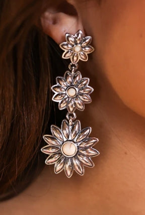 Dangle flower earrings with cream stones