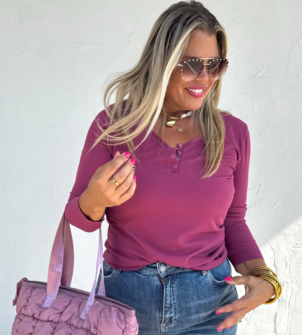 Plum Henley Long Sleeve Top
